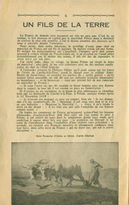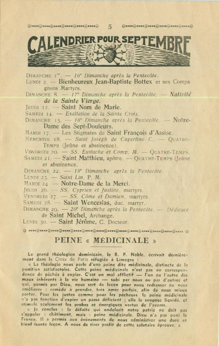 Il a lancé la revue paroissiale « Mon clocher, mon pays ». Voici un diaporama présentant le mensuel numéro 166, du mois de septembre 1940 :